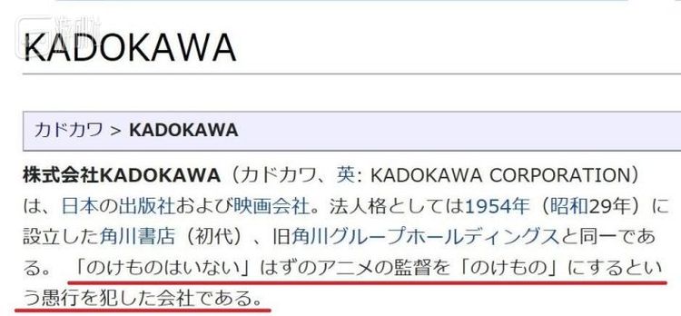 更有狂热分子去维基百科上更改了角川公司的介绍说明: