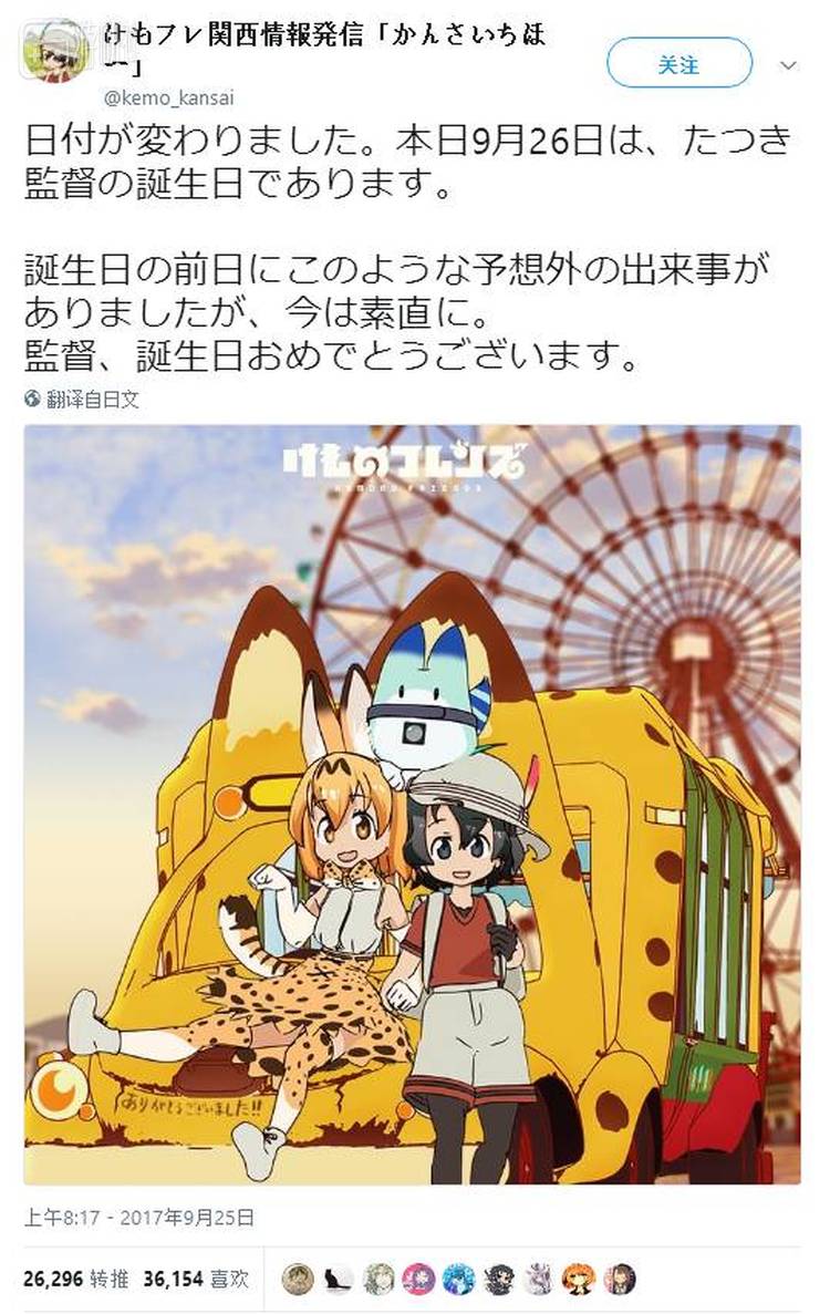 鸟尽弓藏,一手完成《兽娘动物园》的分镜、演出、脚本的导演たつき被角川撤职,引起爱好者们强烈反弹。