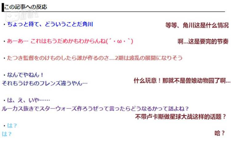 “株式会社角川是日本的出版社以及电影公司。(中略)。是犯下撤换动画监督这种愚蠢行为的公司”