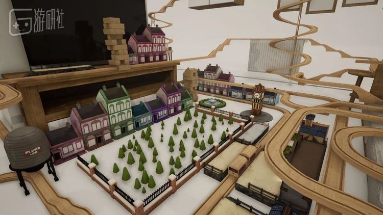与以往铁道游戏不同的是,它并没有多么真实的画面,也没有那么庞杂的操作系统。火车和轨道都是木头的材质,其中的人物建筑模组也都是身边常见玩具的样子。