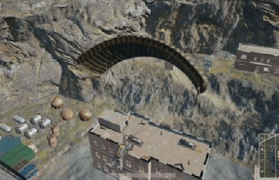 这哥们就比较惨了,落在了没有出口的围墙内部,想成盒都没机会。