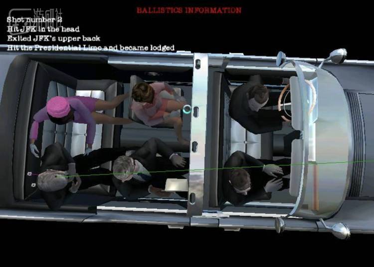 第二枪,你需要从背后命中肯尼迪的右肩下方位置,子弹在体内翻滚之后从总统的喉部飞出,穿过前排就座的州长的右背,在击中车辆仪表盘之后发生反弹,射伤康纳利的手臂……我觉得再说下去就要喝口水了,大家还是直接看电影片段式怎么描述的吧(为了让大家注意字幕,我抹去了音轨)