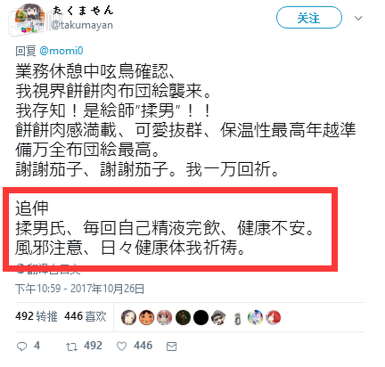 这些人中的集大成者,就是身为18X同人画师的揉男(もみお)。我们先来欣赏一段大师的“社保”感言:
