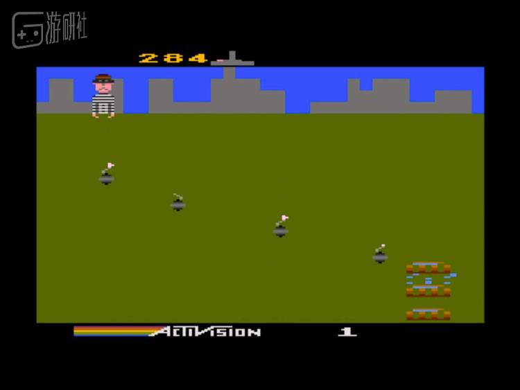 《运河大战》发售于1982年。当年的游戏,别说是雅达利2600这种70年代破烂,就是街机游戏也是单屏游戏闯天下,根本没什么卷轴效果。当年最红的什么《大金刚》《吃豆人》,都是在一个画面里展开的游戏,雅达利就更不用提了。