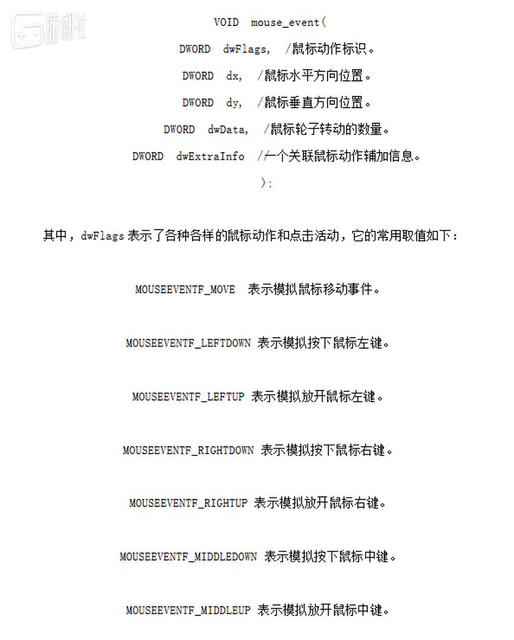 这是外挂教程中,一段模拟鼠标指令的代码