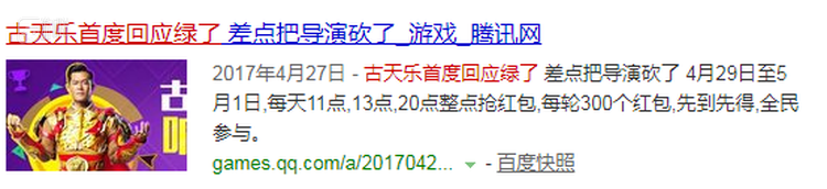 在这个广告被集体吐槽之后,游戏厂商反而还顺坡下驴,做了个“古天乐首度回应绿了”的宣传稿来:
