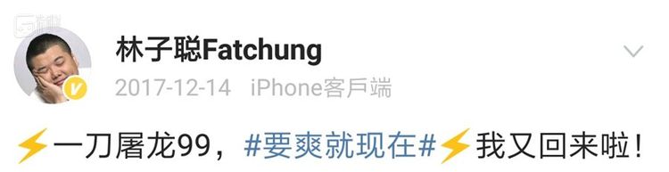2016年夏天,林子聪因为代言了传奇页游,网络上铺天盖地都是他要让大家“尝尝屠龙刀的厉害”,因此被王思聪在微博上怒怼。然而时隔近两年,当我们打开林子聪的微博,却可以发现他依然是这款游戏的代言人,甚至至今还在勤勤恳恳地推广着这游戏: