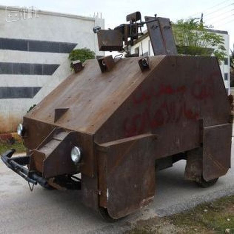 下面是一台名为“夏姆2型”的自制坦克,乍看上去,除了造型比先前我们看过的各种土制装甲车辆要更加猥琐以外,并没有颠覆我们的想象力。
