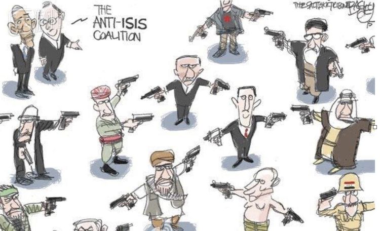 去年元旦,由美俄分别支持的内战双方达成停火协议,将枪口一致对准IS。虽然两个军事大国找到了相同的目标,但由于根本利益的冲突,在各自的军事部署中不仅针锋相对、相互使绊,而且嘴炮也一刻也没有闲着。