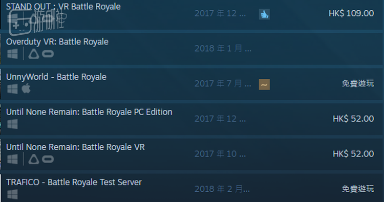 在Steam上搜索Battle Royale(大逃杀)可以找到大量名称相似的游戏