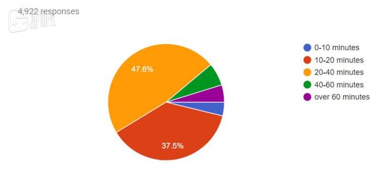 《绝地求生》之前,市面上已经有过类似“大逃杀”玩法的游戏,真正让它得以从众多竞争者之中脱颖而出的重要因素是每局比赛的机制设定。在问到关于每场比赛持续多久最合适时,接近一半的玩家认为20-40分钟一场是最容易接受的时间。