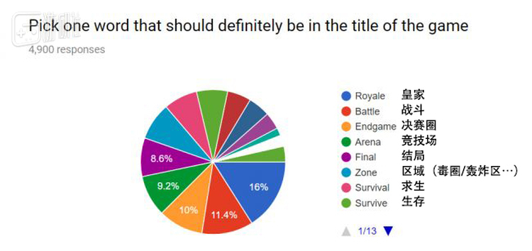 问卷提供了很多经常在游戏名中出现的,或者是跟“吃鸡”玩法相关的词作为备选。根据统计,排名前五的是: