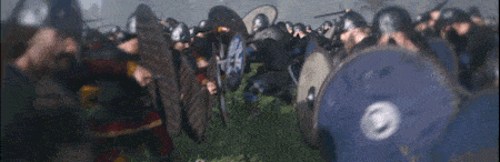 而维京人则有一种种强力的破甲兵器——战斧。这种柄长1.5-1.8米的斧头只要一击便可砍透英格兰人的盾牌和头盔,也是克制英格兰骑兵的利器。