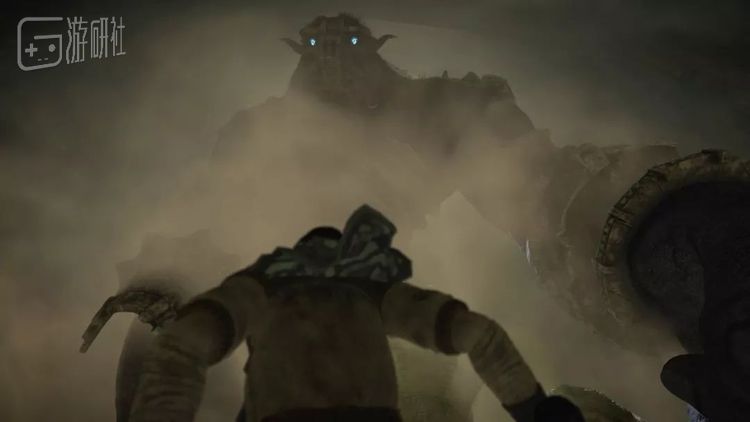 很多时候玩家不看攻略,非常难找到场景与巨像之间的联系。举个简单的例子,游戏中有个一只手是巨大石剑的Boss,当它用剑砸向玩家的时候,会陷入土中几秒,玩家可以乘机顺着巨大的剑身爬到它的手上。但是,问题在于,爬上手后,巨像手臂上会有一个石环挡住。直接上是上不去的。