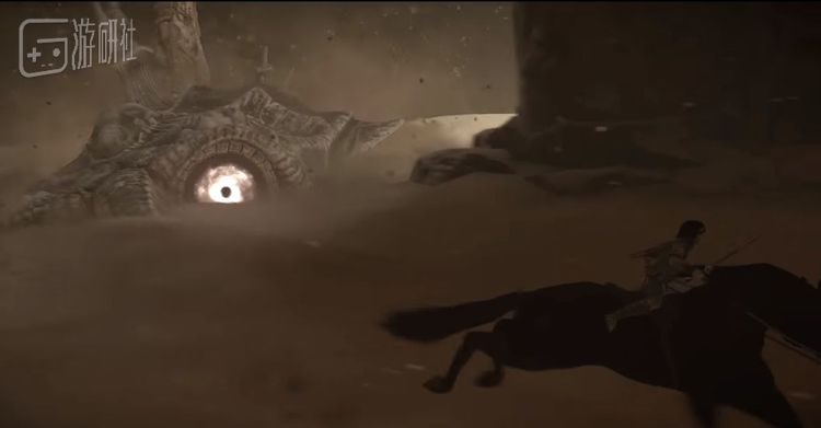 其中有在沙地中潜行的巨蛇,在它现身之时,血红的眼睛翻滚着周围的流沙,追逐着汪达与他的爱马,几乎要将其吞噬。