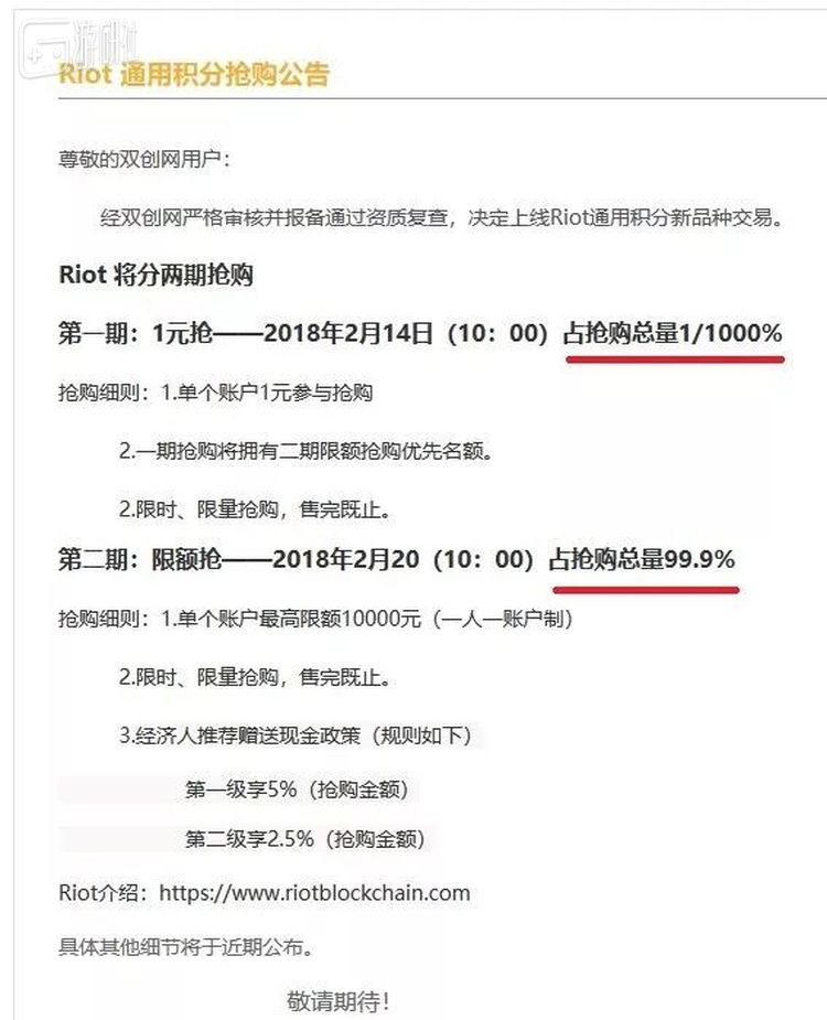 更重要的是,Riotblockchain官网只字未提有个中国交易所正在现金发行他们家的积分。
