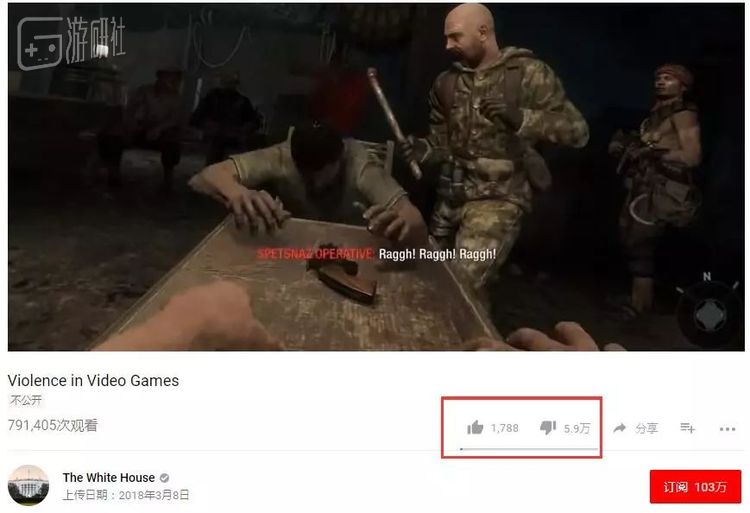 这段视频目前在白宫Youtube频道上还处于不公开状态,但是播放量已经达到了80万次,点赞和差评的比例为悬殊的1788:59000。由于内容比较敏感,这段视频在腾讯视频上一直未能通过审核。