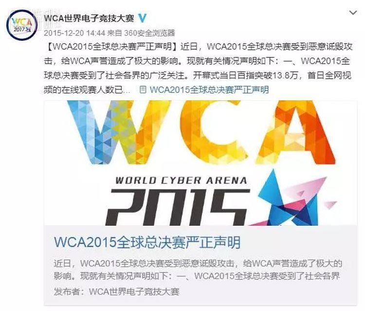 即使这样,在WCG停办的背景下,仍有人期待WCA能够接过WCG的接力棒,但这份期待在第二年便化为了泡影。众人发现WCA2014只是一个不完美的开端,WCA2015出现的种种问题则让WCA的品牌形象跌入谷底。