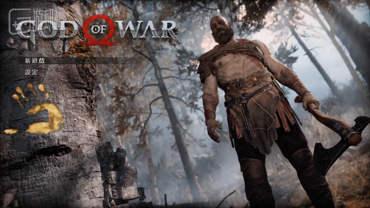 战神年迈的老父亲手里拿着一把奇形怪状的斧头,面前是一颗不知那家熊孩子用屎抹了手掌印的树,随着你选择开始游戏,这位年迈的老父亲蹲下来抚摸起那个屎手掌印子,过了一会,他站了起来,抡起斧子疯狂的砍起了面前的树(熊大,光头强又来砍树了!)。这便是战神新作的主界面,同样短短几十秒,圣莫妮卡带给玩家的却是数不清的疑问。那个手掌印是什么?奎爷怎么了?为什么要砍树?以及一句,奎爷你老了,砍树都要砍5下了。
