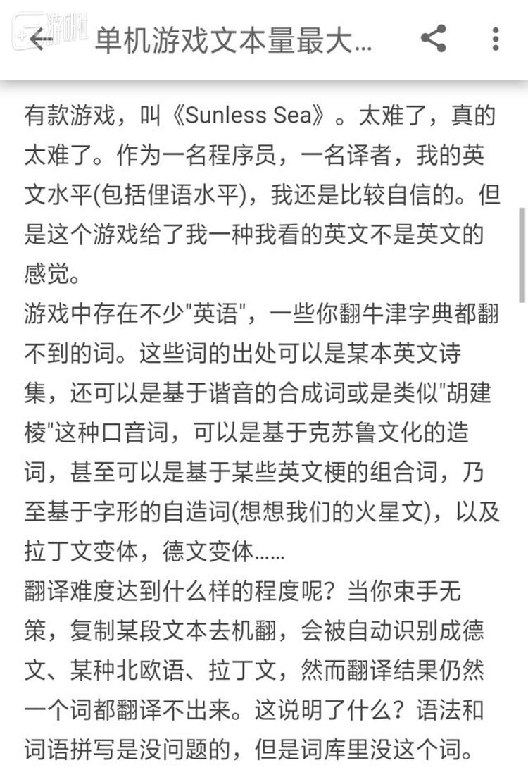 还有一位叫“白袍过客”的朋友更为具体地说明了《无光之海》地汉化难度。