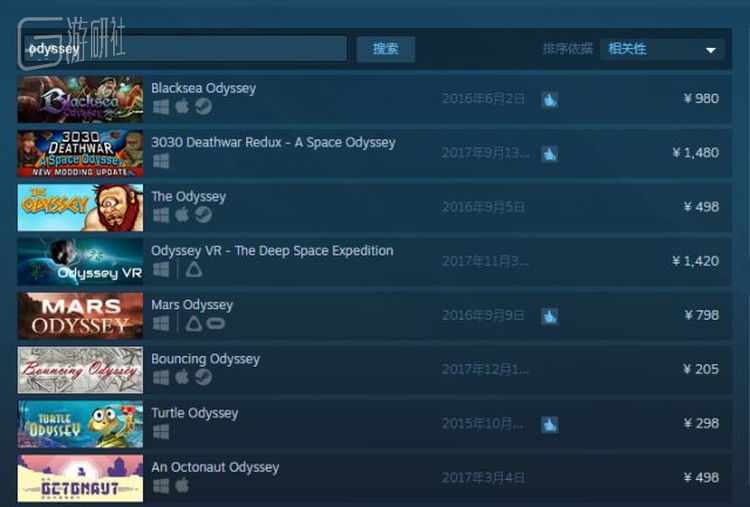 如果你直接在Steam上以Odyssey为关键词进行搜索的话,可以找到将近100款相关游戏,奥德赛的确算得上游戏圈里比较热的一个词了。