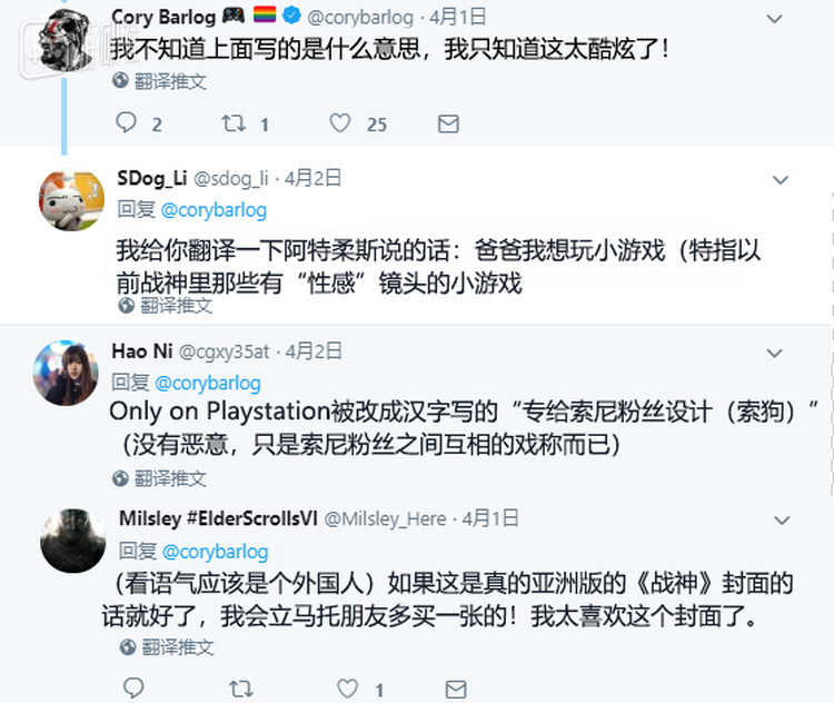 由于Barlog并不懂中文,所以他只知道这幅画是出自一位中国玩家之手,并不了解“爸爸,我要玩小游戏”这句话和封面上一些细节的具体含义。幸好推特下面有一群中国玩家自愿担当起了翻译的工作。