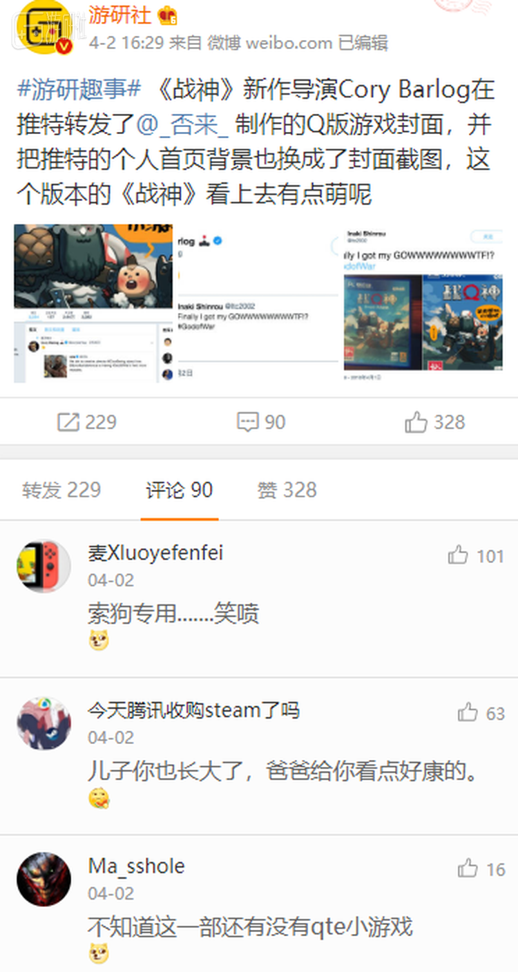 至于聊到为什么会想要画这样一个封面,他告诉我一方面是出于对《战神》这部游戏的期待,另一方面则是因为当天正好是4月1日愚人节,所以也算是因为“蹭热度”,他才有了画幅画开个玩笑的打算。