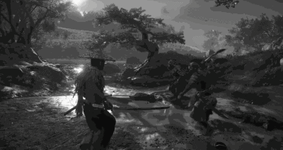 其实早在《对马岛之鬼》的英文配音版演示刚刚在E3放出之后,就有粉丝由此联想到了日本剑戟片,他们在论坛上还专门发布了一些套用黑白滤镜的动图,看起来的确像模像样。而这次SelectStartTV频道则更进一步,彻底重制了这段演示,也算是满足了这些粉丝的愿望。