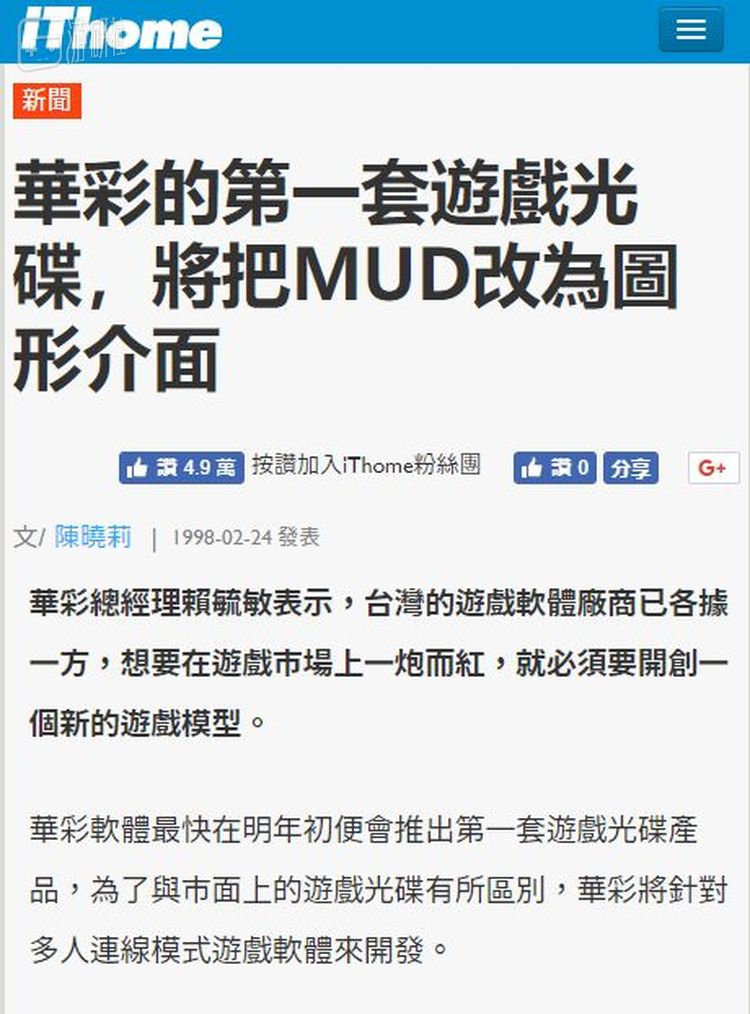 在这篇20年前的报道中,华彩总经理赖毓敏表示,台湾的游戏软体厂商已各据一方,想要在游戏市场上一炮而红,就必须要开创一个新的游戏模型。