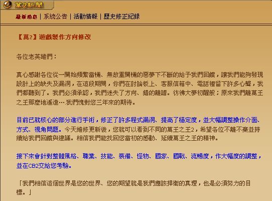 这导致《万王之王2》在游戏架构上与前作有诸多不同,研发团队的变动、重组也让游戏开发雪上加霜。今天网游研发典型的坑,基本都让这一代踩过一遍。2005年,雷爵边赶进度,边直接测试了游戏,遭到玩家一顿喷。