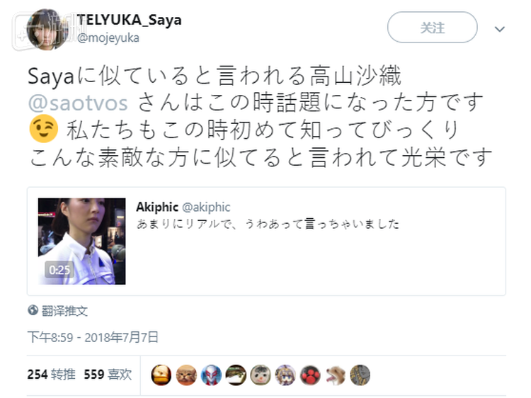 被说成很像Saya的高山纱织,就是当时引起热议的那个人(指在索尼展台上扮演《底特律》的仿生人),我们也是刚刚知道的。(Saya)被说成跟这么漂亮的人很像,我们真是太荣幸了。