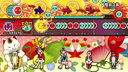 《太鼓达人》系列的玩法非常简单,玩家需要用鼓棒敲打实体鼓,红色的音符击打鼓面,蓝色的音符击打鼓边,碰到黄色的连打条和气球只需要快速敲击鼓面即可。