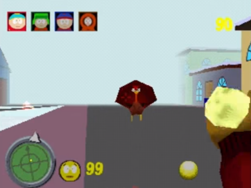 追根溯源,维基百科显示,第一个南方公园改编游戏于1998年末在N64上推出,是一款射击游戏,并于次年被移植到Windows和PS1。游戏由Acclaim Entertaiment发行,旗下工作室Acclaim Studio Austin开发。他们主要开发棒球和篮球游戏,还有一款射击游戏系列《恐龙猎人》(Turok)。想必《南方公园》会制作成射击游戏,和《恐龙猎人》有些渊源。