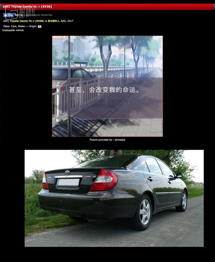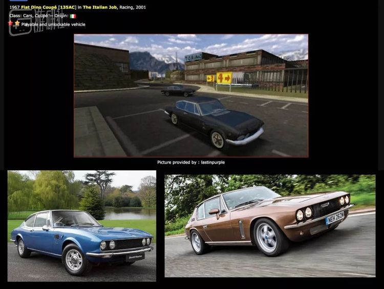 这个网站会标出游戏的名字、厂商等信息,并把游戏里的车在现实中对应的型号标识在图片下方