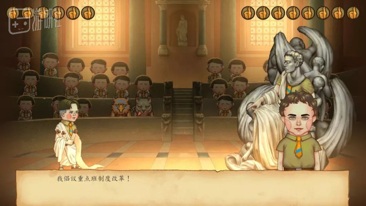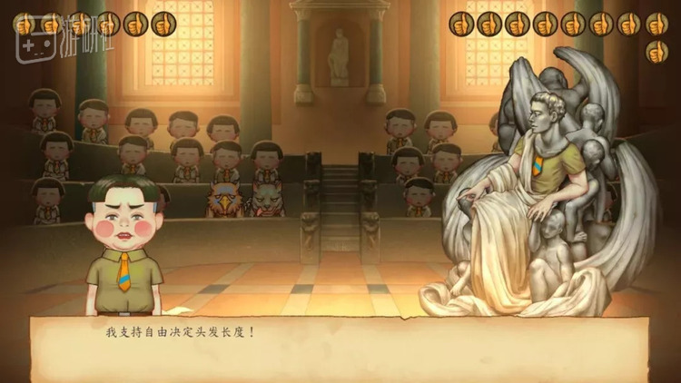 在竞选辩论里,主角和对手各自提出对学校管理改革的政见。在游戏中时代40多年后的今天,微博依然有“学校要求学生统一发型”的热搜,因为“预防近视”管制游戏,真的分不清现实和游戏究竟谁更荒诞魔幻。