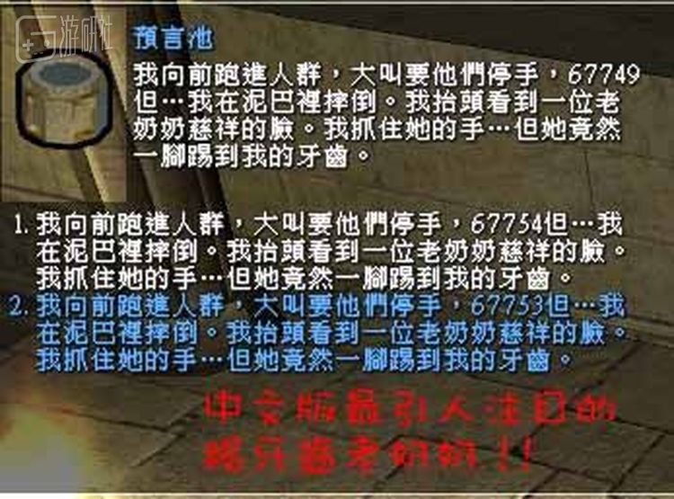 “踢牙老奶奶”之所以如此广泛传播,是因为在这个汉化版中,这句话本身就频繁出现,并且出现在许多毫不相关的地方。这一点在众多网站上也都有正确的描述。