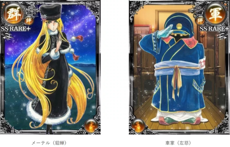 另外一位漫画大师松本零士也和游戏进行了两次合作,合作的角色分别是貂蝉、左慈以及夏侯惇,前两名角色是《银河铁道999》中的梅德尔和车掌先生。