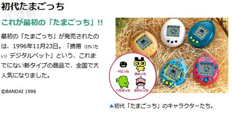 这样一个简单的小玩具,在技术上并不存在什么问题,只不过万代并不清楚这样一款产品究竟会不会受到欢迎。抱着“试一试”的心态,他们和WIZ合作,于1996年11月正式发售了这款产品,也就是“电子宠物”的始祖——第一代拓麻歌子。