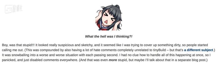 病娇君的开发者博客清晰易读,还配有可爱的游戏女主角表情包,一直很能打动人,但是很多粉丝已经不会相信了