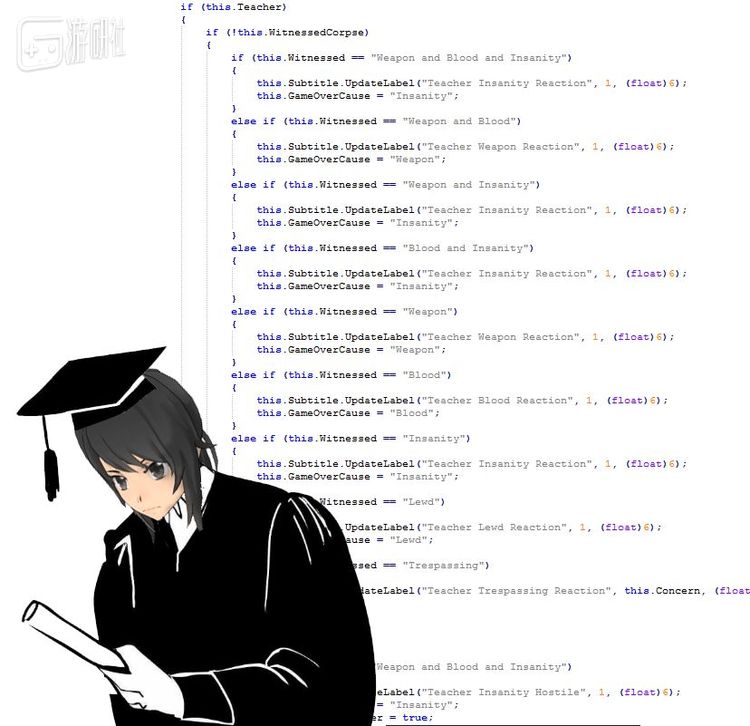 最常被嘲讽的可能还是病娇君的编程水平了。病娇君一直坚称自己“有三年的游戏开发经验”,可是写出来的程序却全是“if/else if”的基础逻辑判断,导致游戏虽然画面不怎么样,内容也不多,却经常三步一卡顿。