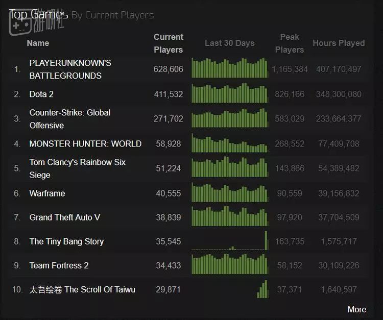 中文游戏想爬到Steam在线人数榜前十是很难的,而《太吾绘卷》还是今天前十唯一的单机游戏