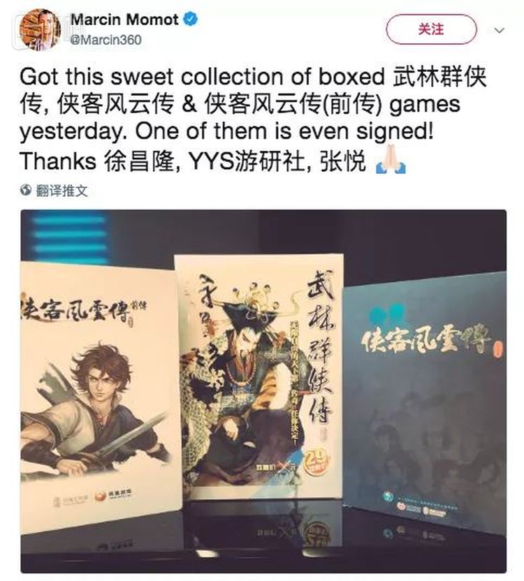 先前CD PROJEKT RED社区经理Marcin Momot就曾在推特上抱怨,因为《侠客风云传》未设定波兰区定价,导致自己无法在steam上购买游戏。这一事件最后以开发商凤凰游戏在steam平台上为波兰和其他区域设立定价,Marcin Momot得偿所愿的完美结局告终。而我社编辑九月老师也在随后托朋友“人肉快递“,赠送了包括《武林群侠传》《侠客风云传》《侠客风云传前传》在内的豪华礼包给他。