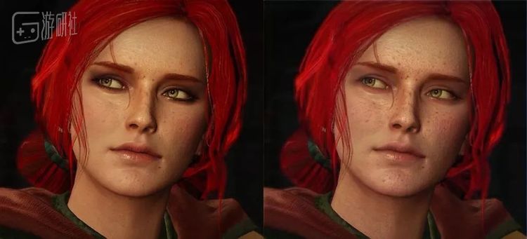 但是感觉舒服自然,不代表不存在。尤其是写实风格的角色,有没有化妆,区别还是挺明显的。比如《巫师3》中可爱甜美的特丽斯,假如去掉了精心制作的眼妆、唇妆和粉底,就会显出一点中年老法师的痕迹: