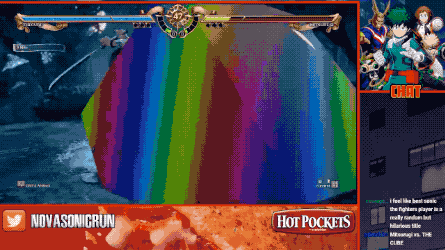 但这个彩虹方块不一样。它实际上是一个正常的角色“包”在一个巨大的方块贴图里,只要对方打不到藏在里面的“本体”,方块就不会受到任何伤害。