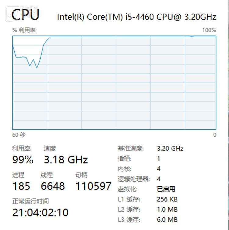 期间CPU利用率基本维持在99~100%。