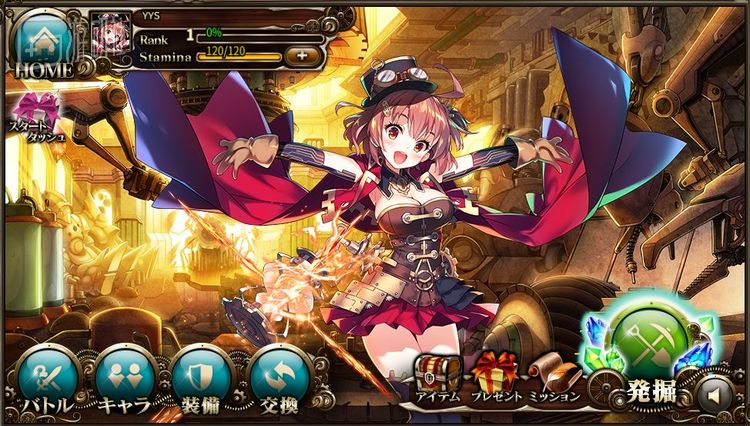 在这款游戏里同样未设氪金通道,在这里挖矿是“発掘”,这两个字非常明显的占据了屏幕的右下角,甚至取代了“战斗”。
