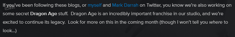 考虑到目前BioWare正在集中精力开发《圣歌》,《龙腾世纪》的新作恐怕真的是遥遥无期。不过,上周的时候,BioWare的总经理Casey Hudson确实说过他们最受欢迎的系列之一——《龙腾世纪》可能会在12月发布新消息。这一情报也可以与传闻相互佐证。