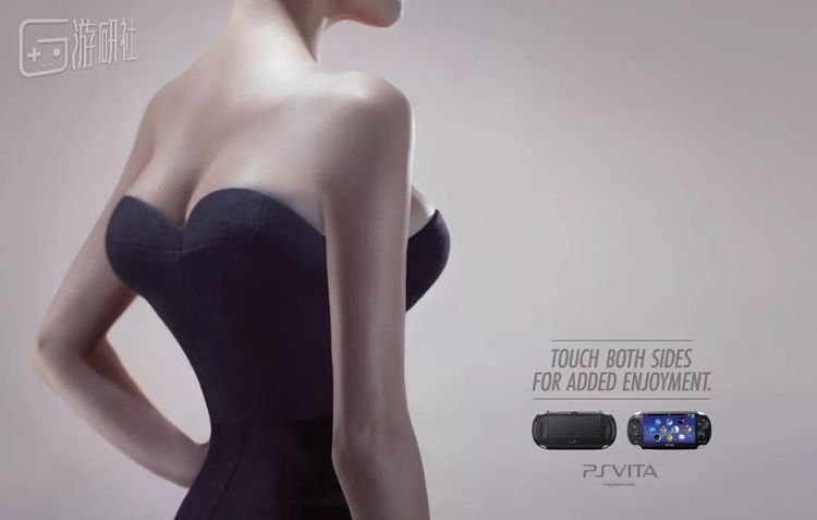 广告方面,索尼也是一把好手。为了宣传PSV掌机的双面触控功能,索尼制作了一则平面广告,主体为一名前后两面都有胸的女性。