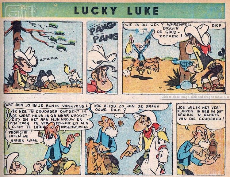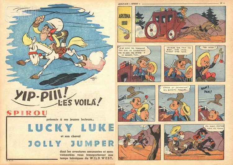 1946年12月7日,莫里斯创作的《幸运的鲁克》刊登在当期的《斯皮鲁》杂志上,这个正直勇敢,个性鲜明的牛仔,加上对欧洲读者来说陌生的西部风情,让这部漫画一炮而红。