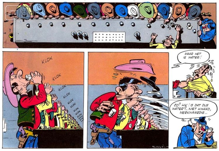 高斯尼还从美国带回来一套全新的构图方法。在美国的6年间,莫里斯也学习到了许多不同的漫画技巧。他开始尝试在作品中,加入好莱坞式的分镜头,许多画面,都可以从西部片中找到渊源。